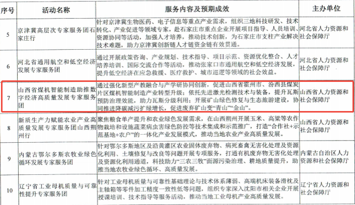 近日,浦京官网申报的“山西省煤机智能制造助推数字经济高质量发展专家服务团”项目成功入选国家人力资源和社会保障部2025年专家人才服务基层活动。
