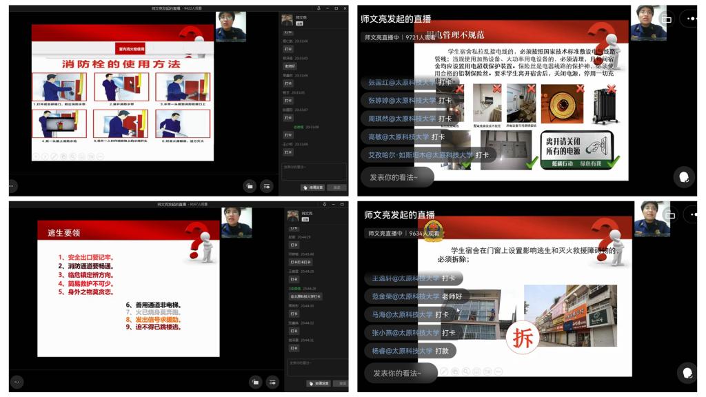 此次线上讲座,实现了“点对点”精准推送消防安全知识,强化了广大学生的消防安全意识,增强了广大学生的消防应急处置能力,为坚决打赢科大疫情阻击战创造良好的消防安全环境。