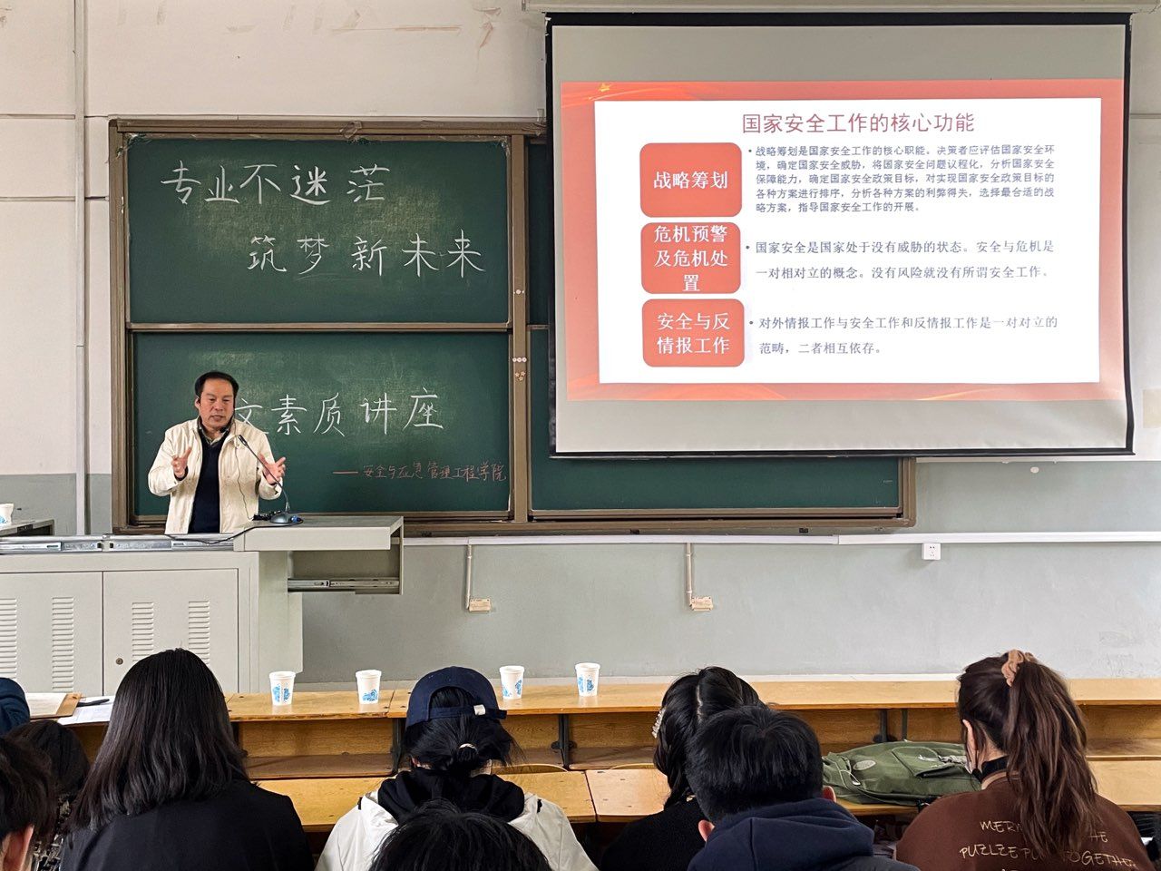 曹雄教授以今年4月15日是第八个全民国家安全教育日为引言,结合历史、国际国内形势、我们身边发生的诸多案例,多角度对总体国家安全观的16个方面、国家安全工作特点、国家安全核心功能、国家安全学的内涵、国家安全学学科建设基本构想和国家安全学的学科体系六个方面为大家做了精彩讲授,并在专业学习上,曹雄教授希望大家进行探究性学习,要有创新意识和创新精神等。