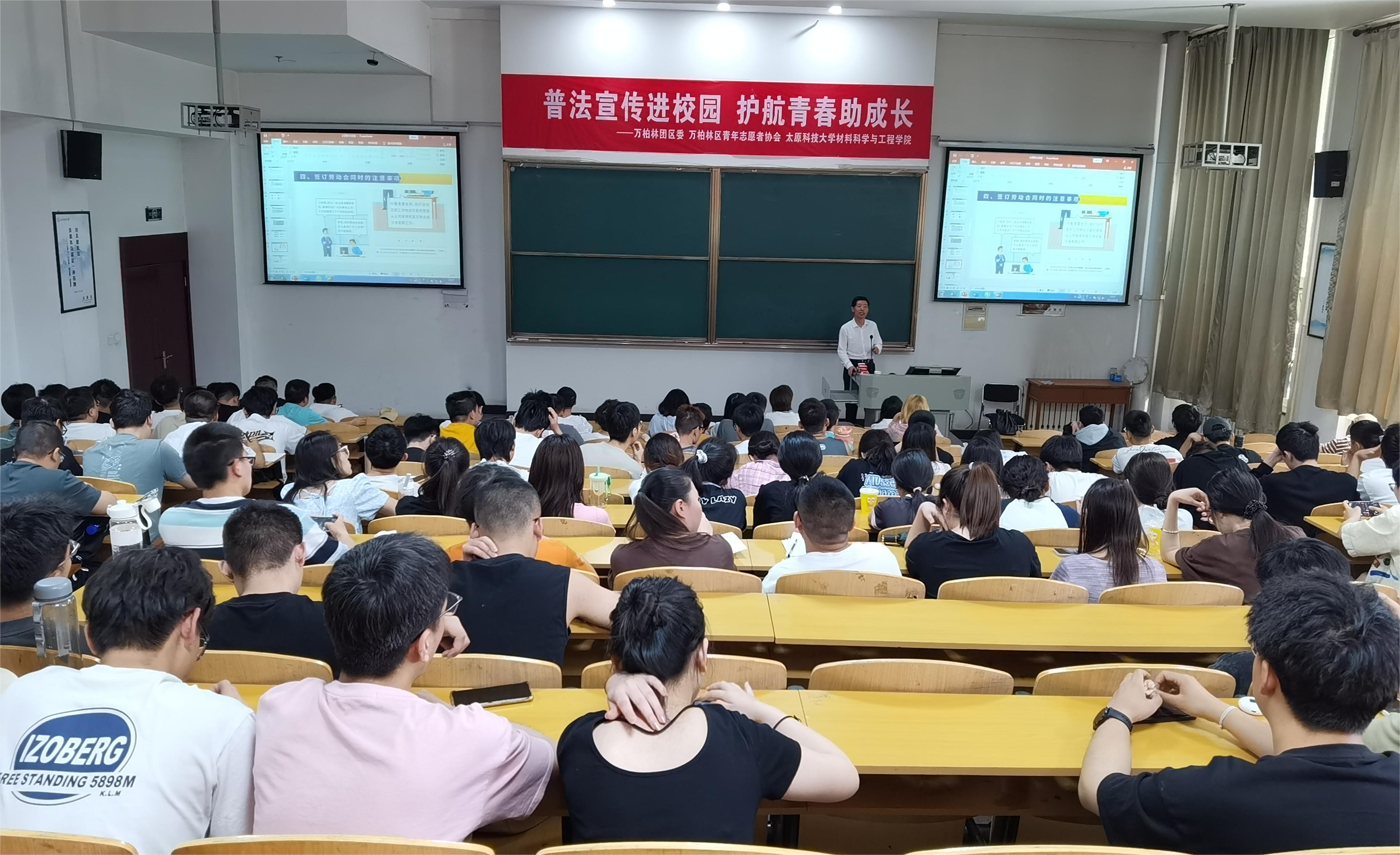 为进一步提高学生法治意识,增强学生法律常识,切实帮助学生维护自身合法权益,5月18日上午,材料科学与工程学院联合万柏林团区委和万柏林区青年志愿者协会在综合楼三阶共同举办了“普法宣传进校园,护航青春助成长”的法律知识讲座。