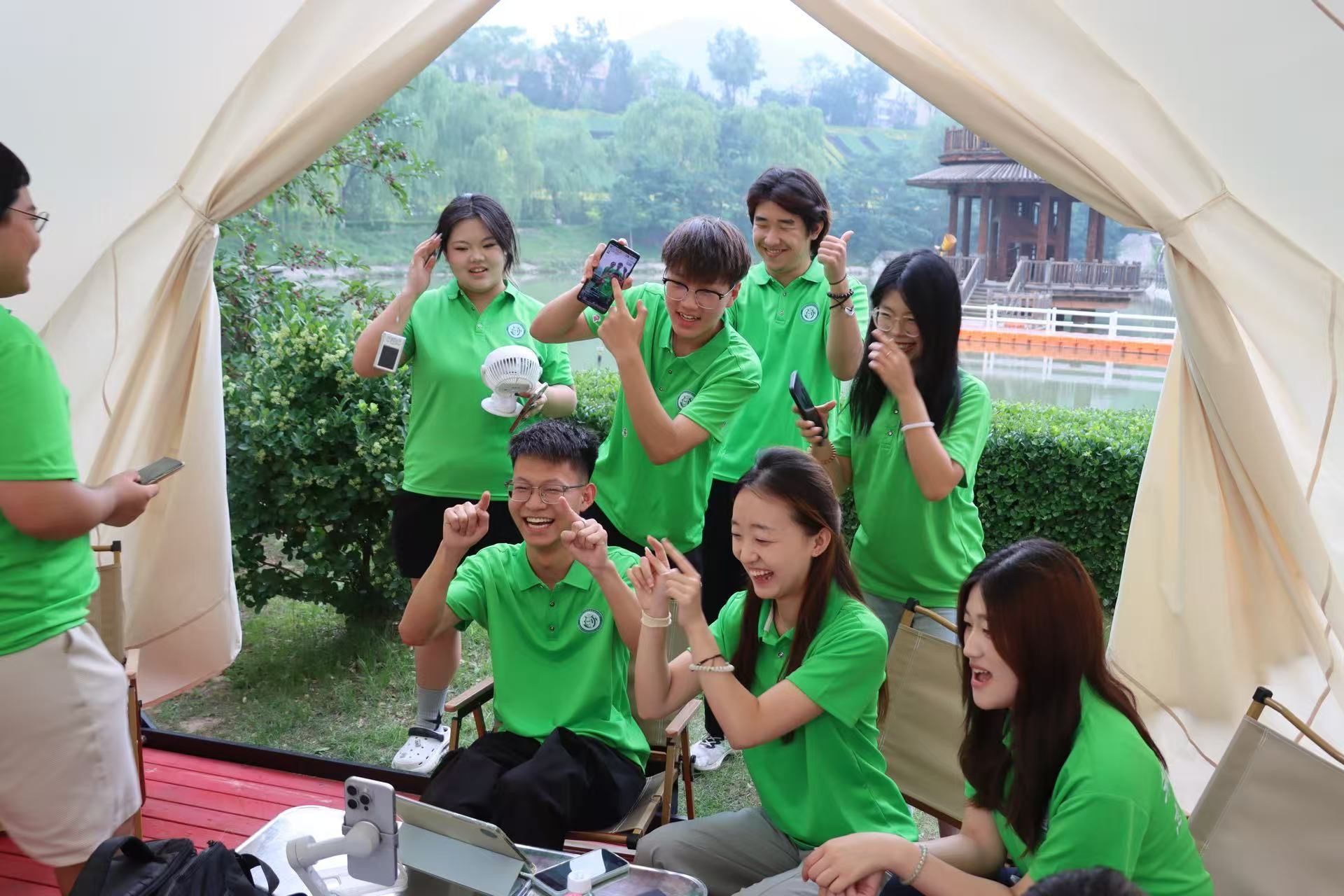 秘境守护传文脉,数字助农拓新路。“如果有机会,我一定还要回到这里,和大家一起,让这儿变得越来越好!”环保232302班史珊嵘说道。实践队在峪口村下田除草,学现代农业知识,体会农耕的艰辛与科技力量。探秘天竺山崖柏生长区,化身“文旅推荐官”开展直播助农,唱乡土小调、跳轻快舞蹈,讲解崖柏传奇与喀斯特地貌,后台实时答疑、推送门票链接,超4万次点赞让石膏山美景走向更多网友。
