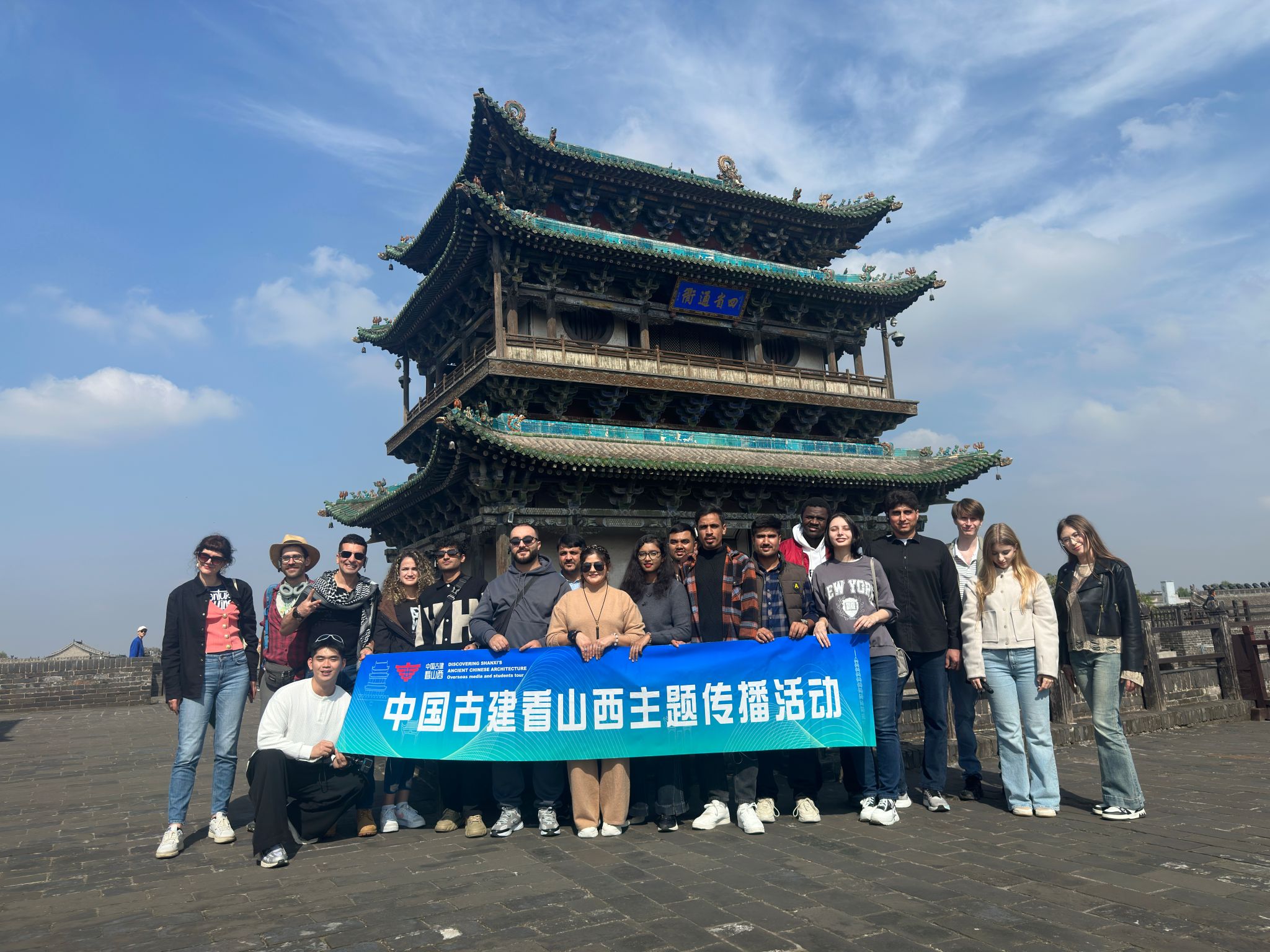 近日,浦京官网国际教育学院10名师生受邀参与由中共山西省委宣传部、中国日报社指导,山西日报社等主办的“中国古建看山西”外籍博主主题活动启幕,与八国博主共赴三晋大地,在晋祠、平遥古城、王家大院、永乐宫等文化地标中,探寻古建魅力,传递山西文化。