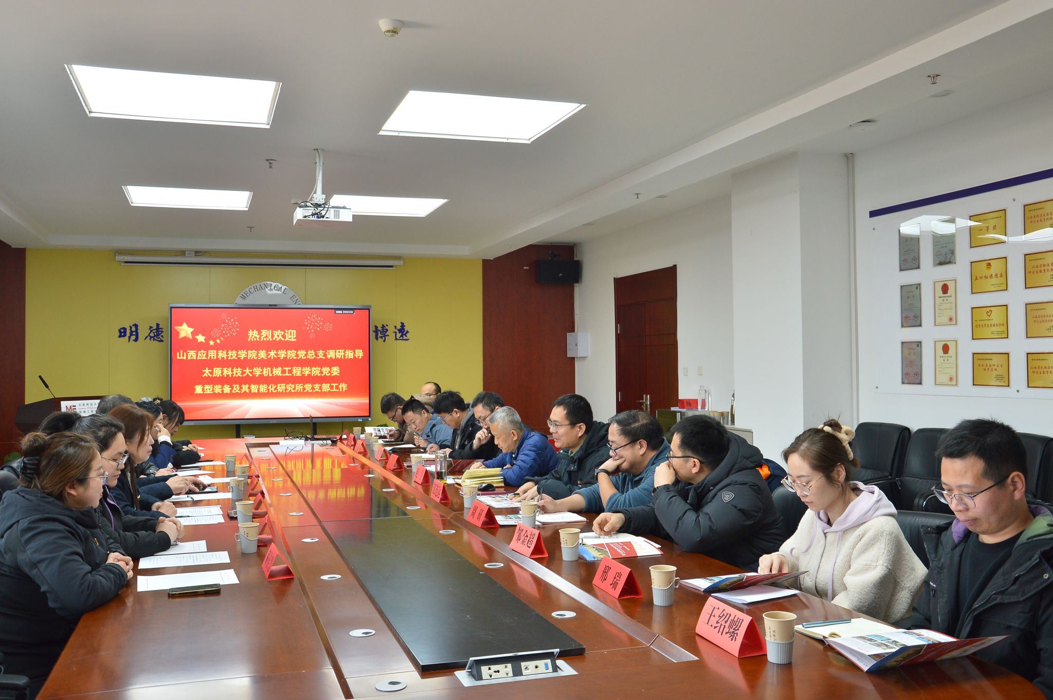 为深入学习贯彻党的二十届四中全会精神,推进新时代高校党建示范创建与质量创优工作,落实山西省高校党建工作规范提升专项行动和3522vip浦京集团官网党委党建规范提升专项行动要求,机械工程学院党委积极探索跨学科、跨院校基层党建联建新模式。近日,机械工程学院党委与山西应用科技学院美术学院党总支,在3522vip浦京集团官网开展“学习党的二十届四中全会精神,共谋党建联建新发展”主题交流活动。