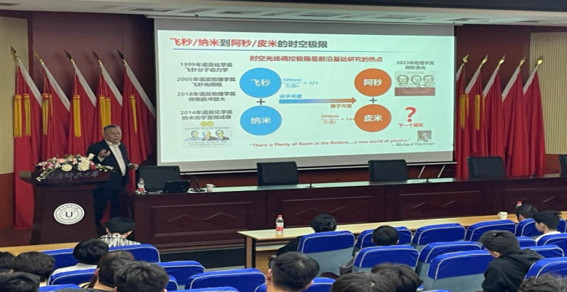 随后,系列学术讲座在图书馆六层报告厅举行。袁小聪教授以《奇点光场调控与皮米光子学》为题,立足国际学术前沿,阐释了奇点光场调控的核心理论、关键技术突破以及皮米光子学的最新研究进展。深圳大学微纳光电子学研究院党委书记李瑛教授围绕深圳大学的办学理念、学科建设成就、微纳光电子学研究院的科研平台布局等方面作了介绍。深圳大学石鹏副教授以《新型拓扑光场调控,检测和应用研究》为题,分享了拓扑光场领域的最新理论研究成果。讲座互动环节,在场师生踊跃提问,专家逐一细致解答,现场学术研讨氛围浓厚,拓宽了师生的科研视野,激发了创新动力。