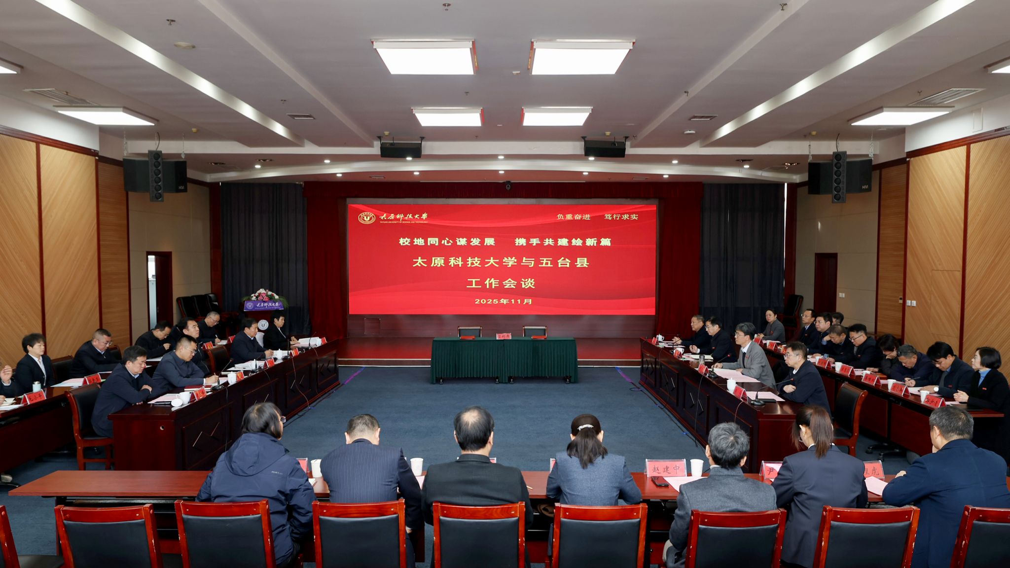 为充分发挥高校人才科创优势,精准服务县域经济社会发展,11月26日上午,浦京官网与五台县在博学楼十六层会议厅举行校地合作座谈会,并签署合作协议,开启双方深度合作、协同发展的新篇章。校党委书记白培康,校党委副书记、校长梁卫国,校党委常委、副校长刘向军,校党委常委、副校长侯华;五台县县委书记赵永强,县委副书记、县长贾文柱,县委常委、组织部部长贾腾飞,副县长李文秀,副县长袁玉峰等双方领导出席签约仪式。五台县有关部门负责人及企业代表,浦京官网相关部门和学院负责人参加座谈。签约仪式由刘向军主持。