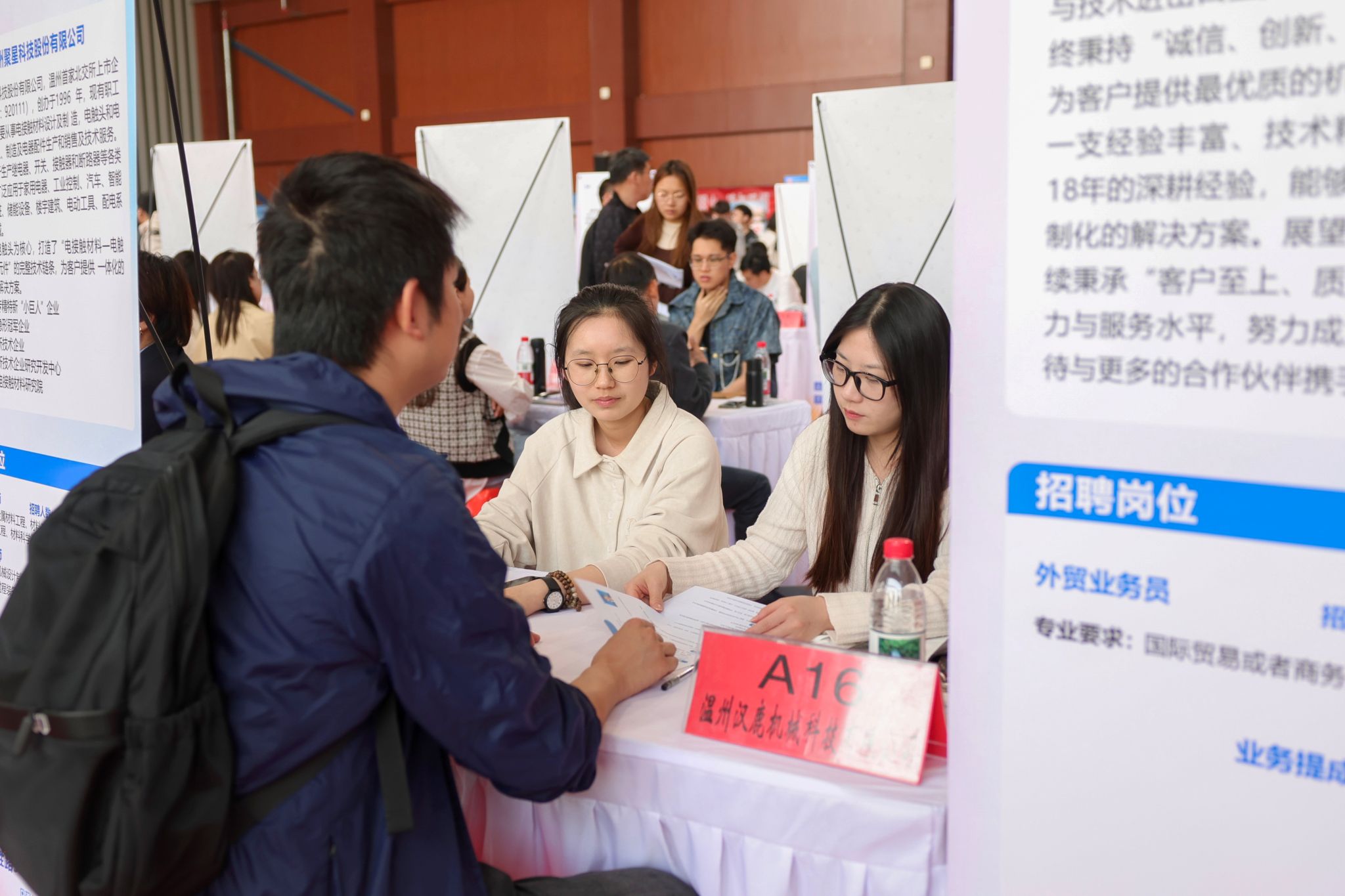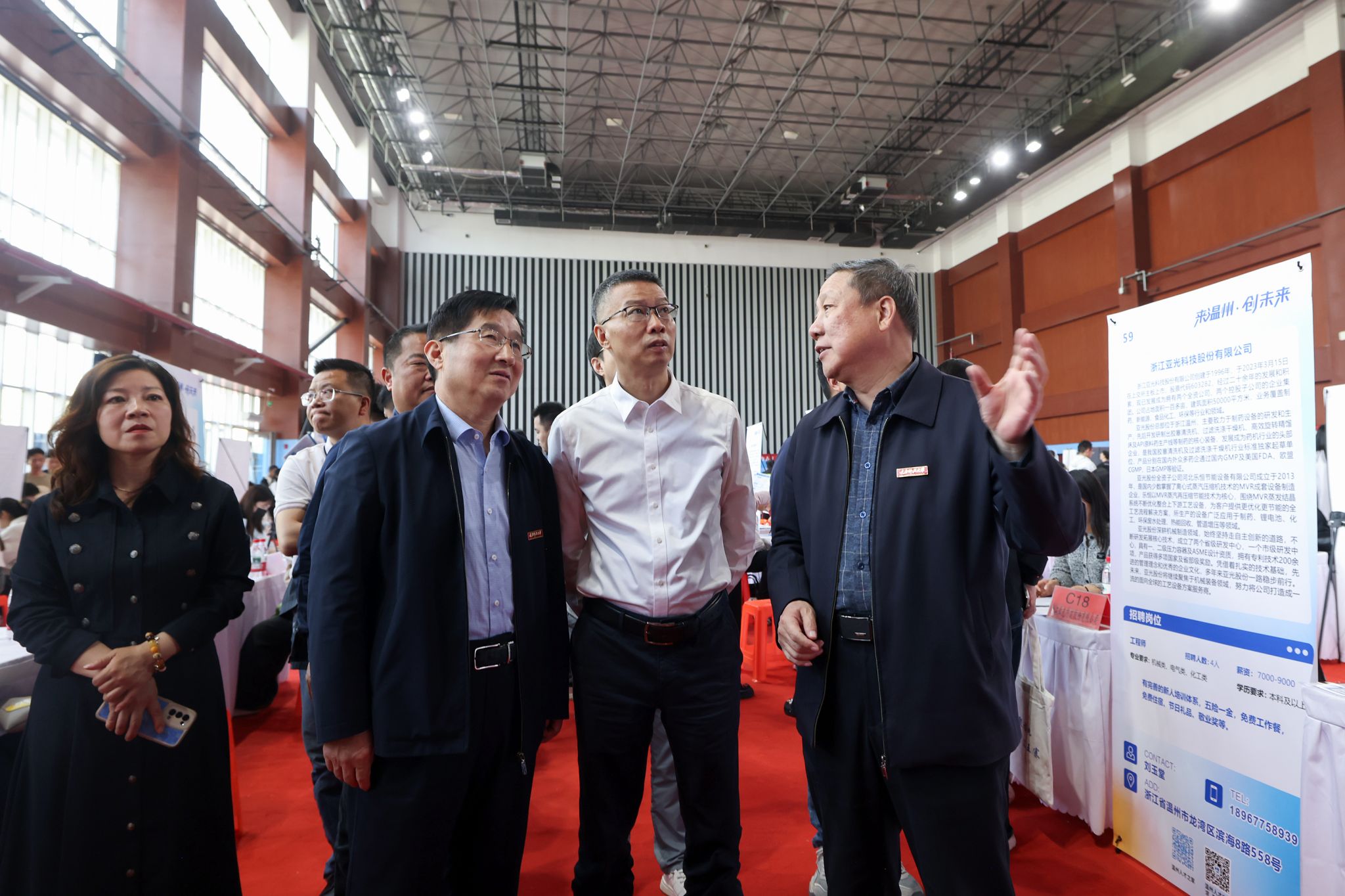 招聘会现场气氛热烈,校党委书记白培康,校党委副书记、校长梁卫国,校党委常委、副校长刘向军,温州市人力资源和社会保障局副局长庄加灵等多位领导来到招聘会现场,深入了解企业用人需求,关心毕业生就业意向。会议现场毕业生投递简历数突破11000份,其中约500名同学与心仪企业达成初步就业意向,收获职场“入场券”。