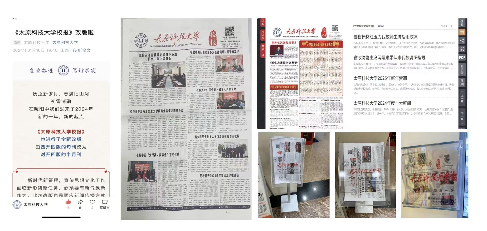 聚焦融媒赋能展形象。创新融媒体宣传平台与技术方式,成立3522vip浦京集团官网融媒体中心,充分运用图文声频、视频直播等多媒体手段,围绕学校中心工作进行立体化展示、全方位报道,不断发展巩固壮大奋进新时代主流价值、主流舆论、主流文化。推动学校官网改版焕新正式上线,进一步提升网站吸引力、传播力、服务力。对校报改版扩容,从4开4版改为对开4版,黑白版改为彩版,增强了阅读体验。逐步构建校内外媒体联动矩阵,深入报道学校改革发展所取得的亮点成效,在中国教育报、科技日报、学习强国、山西日报等省内外权威媒体,对浦京官网党建思政、科研创新等相继进行重点报道,持续增强学校办学育人的美誉度和影响力。