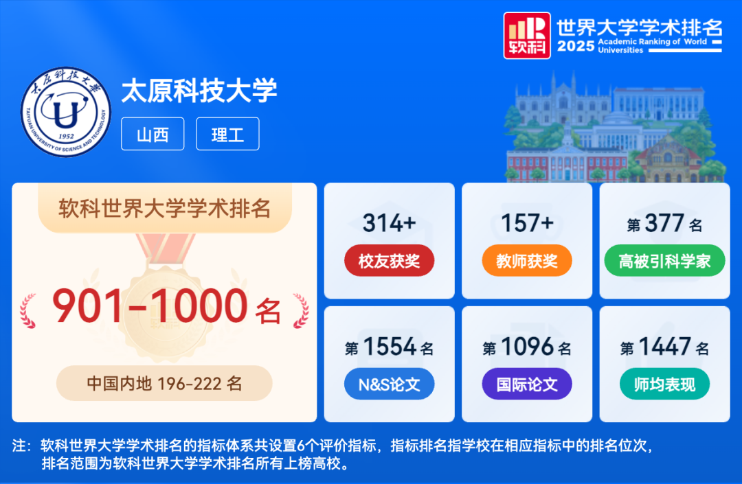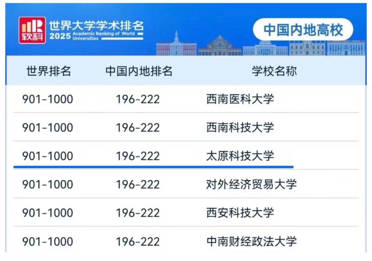 近日,“2025软科世界大学学术排名”正式发布,这一全球知名高等教育评价体系覆盖了1000所顶尖研究型大学,浦京官网首次跻身全球榜单。在本次排名中,山西高校共有5所榜上有名,其中浦京官网位列全球906名,国内197名,首次进入国内前200名区间,国内外排名均显著提升。