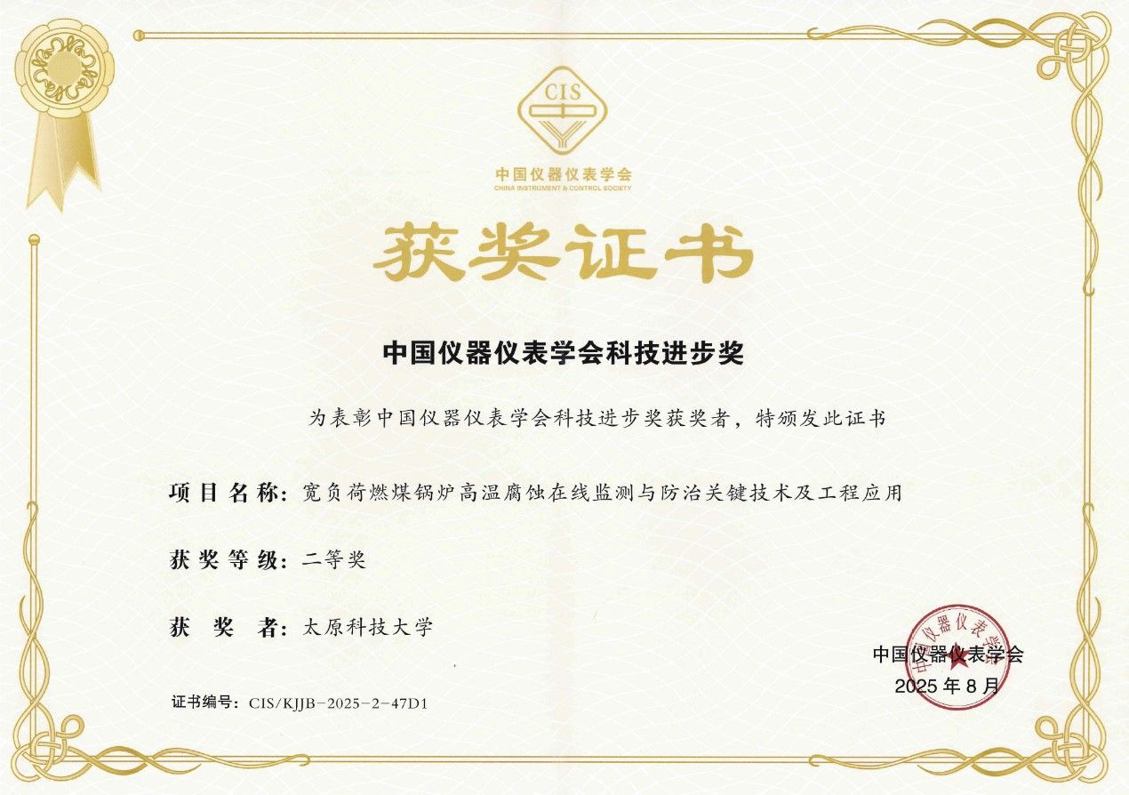 近日,由浦京官网应用科学学院李传亮教授团队牵头,联合西安交通大学、山西大学、国家能源集团科学技术研究院有限公司、山西晋谱光电科技有限责任公司等单位,申报的“宽负荷燃煤锅炉高温腐蚀在线监测与防治关键技术及工程应用”荣获2025年度中国仪器仪表学会科技进步二等奖。